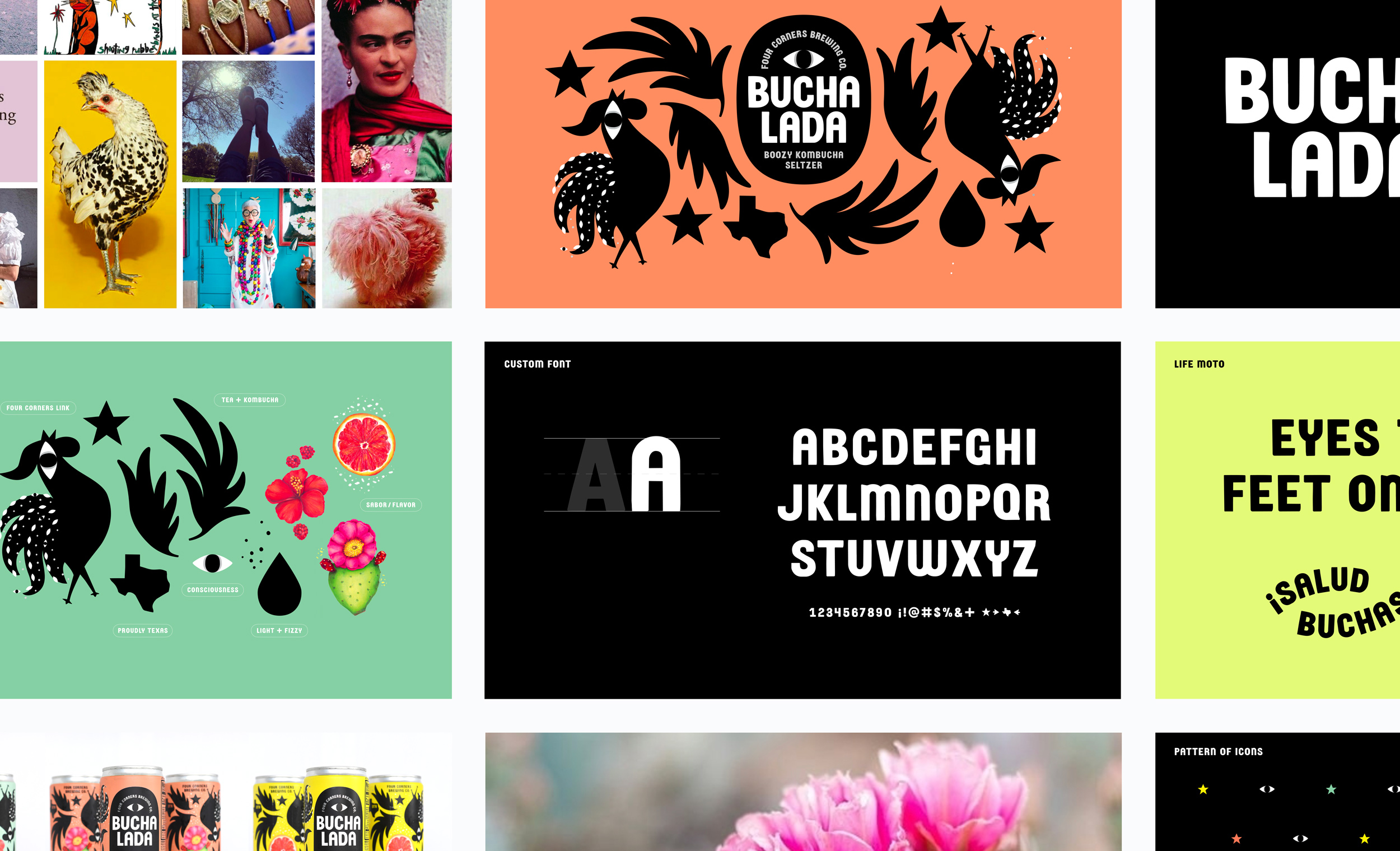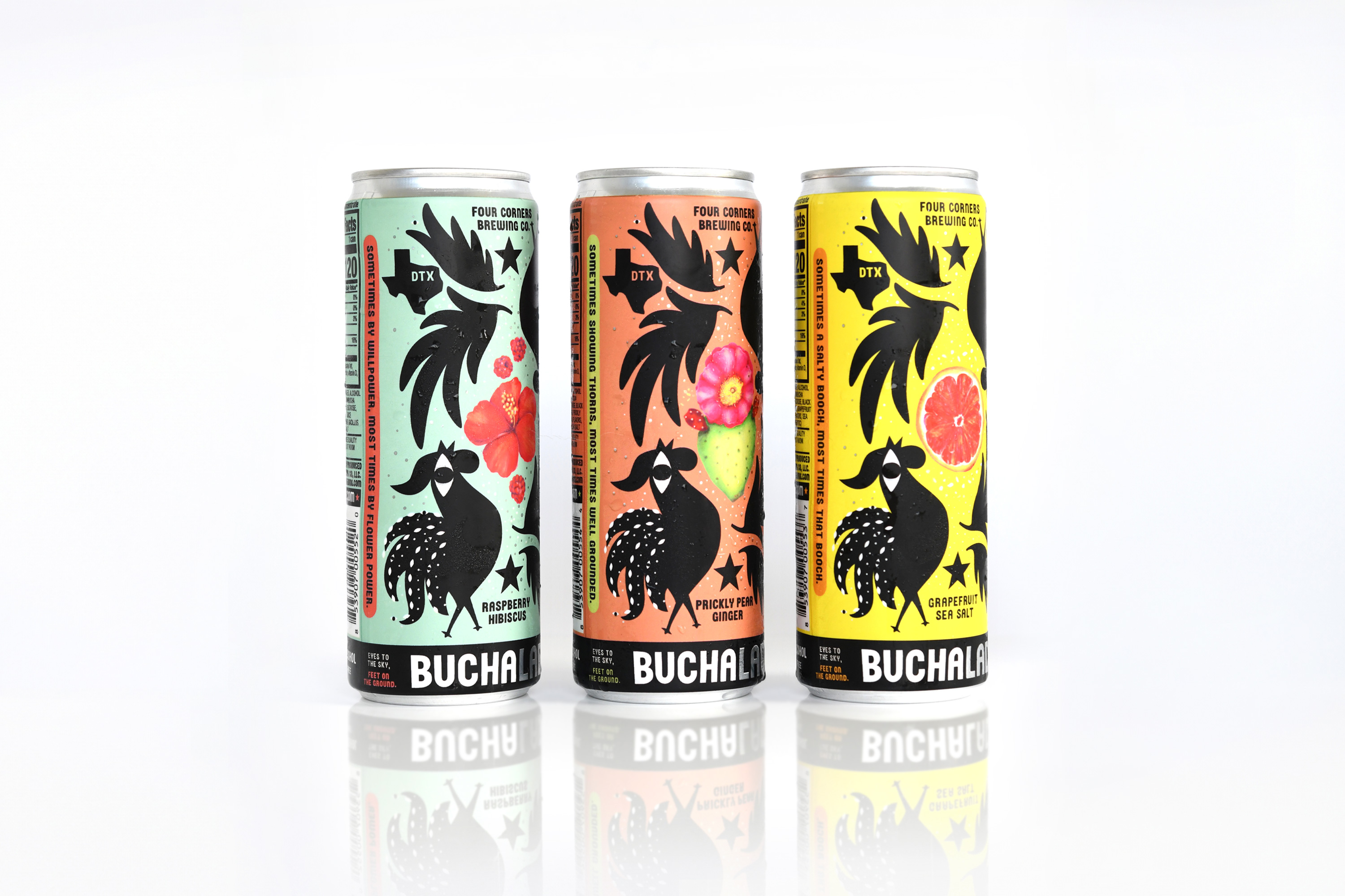 The visual system retained key connections to the core brand through flavor illustrations and a custom font adapted from a primary typeface. The rooster was given an eye to reflect elevated consciousness and express the brand’s motto, “Eyes to the sky, feet on the ground.” This concept of duality carried through the brand’s voice, design, and product.