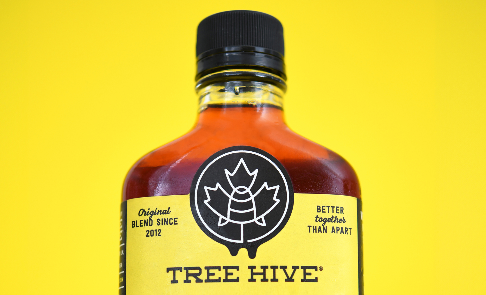 The logo combined a maple leaf + beehive, visually capturing the product story in a single, ownable mark. Bright yellow stood out at store shelf, while bold typography and a clear hierarchy of information set expectations.