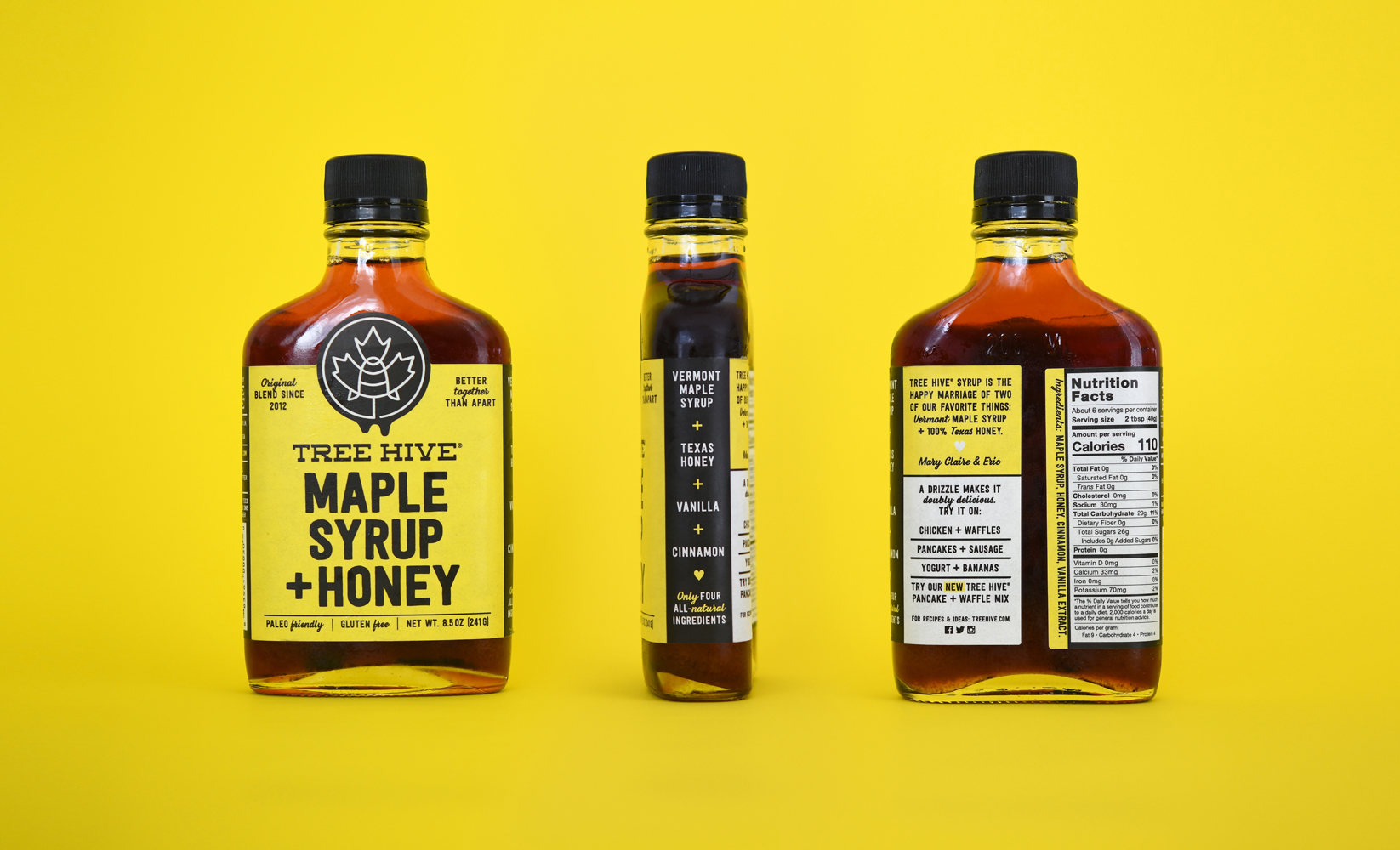 Tree Hive® is the happy marriage of the co-founders’ favorite things: pure Vermont maple syrup + 100% Texas honey. I saw an opportunity to play off that union, resulting in a design that balanced charm + shelf clarity.